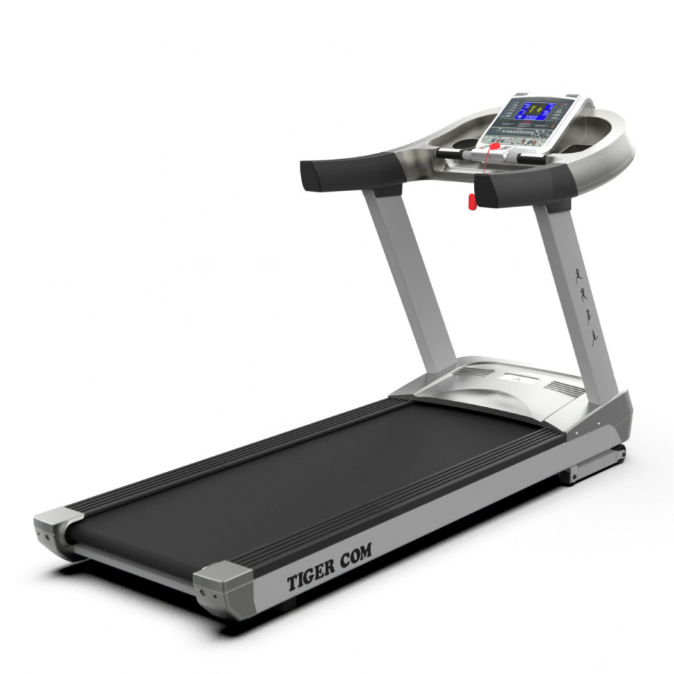 Электрическая беговая дорожка DFC TIGER PRO - улучшенная версия TIGER, отличающаяся более мощным двигателем переменного тока, толщиной полотна и максимальным весом пользователя. Дорожка предназначена для коммерческого использования Двигатель переменного тока мощностью 6 лошадиных сил способен разогнать дорожку от 0,3 до 20 км/ч. Скорость регулируется электронно с консоли с помощью кнопок быстрого запуска, либо постепенно увеличивается с шагом 0,1 км/ч с помощью клавиш около сенсорных датчиков пульса. Наклон тренажёра от 0 до 15° регулируется электронно с консоли. Вы можете выставить желаемый наклон с помощью кнопок быстрого изменения, либо постепенно прибавить или убавить градусы с помощью клавиш. Очень большое беговое полотно размерами 60 х 161 см и толщиной 3 мм, предоставит пользователю максимум комфорта и простора во время бега или ходьбы. Толщина деки 25 мм, дорожка выдерживает пользователей весом до 200 кг. Подойдёт для пользователей ростом до 210 см. 7' ЖК-дисплей отображает: Время, скорость, дистанцию, калории, пульс, угол наклона. 8 программ тренировки. В функционал входят разъемы MP3 и USB, 2 высококачественных динамика для прослушивания музыки или просмотра фильмов и сериалов. Для удобства на консоли расположены кнопки переключения музыки и регулировки звука. С помощью USB-входа пользователь сможет не только подключиться к дорожке для проигрывания медиа-файлов, но и зарядить свой гаджет. На панели есть 2 кармана для бутылки традиционной круглой и квадратной формы - для нестандартной формы ёмкостей, а также подставка под планшет. Сенсорные датчики пульса располагаются прямо под консолью, что упростит переключение программ или скорости во время замера вашего сердечного ритма. Транспортировочные ролики для быстрого перемещения по комнате.