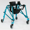 - Колеса ходунков на подшипниках, состоят из пластиковых дисков с шинами из литого немаркого полиуретана. Передние колеса - самоориентирующиеся (рояльного типа), полноповоротные (угол вращения 3600), установлены на вилки из высокопрочного пластика
