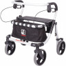 Ходунки и подмышечные стойки выполнены из хромированной стали и не подвергается коррозии, съемное сиденье выполнено из искусственной кожи. Четыре колеса конструкции обеспечивают легкость передвижения без лишних усилий. Задние колеса оснащены стояночными тормозами.