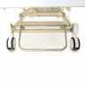 Двойной каркас из высококачественных стальных труб покрыт ударопрочной эмалью. Стойкое покрытие защищает кровать от механических повреждений и позволяет использовать дезинфицирующие средства для очистки поверхности. Изделие выдерживает нагрузку до 250 кг и подходит пациентам любой комплекции. Кровать оснащена прочными самоориентирующимися колёсами с шинами из полиуретана, которые обеспечивают мягкое, бесшумное перемещение и не портят напольное покрытие.